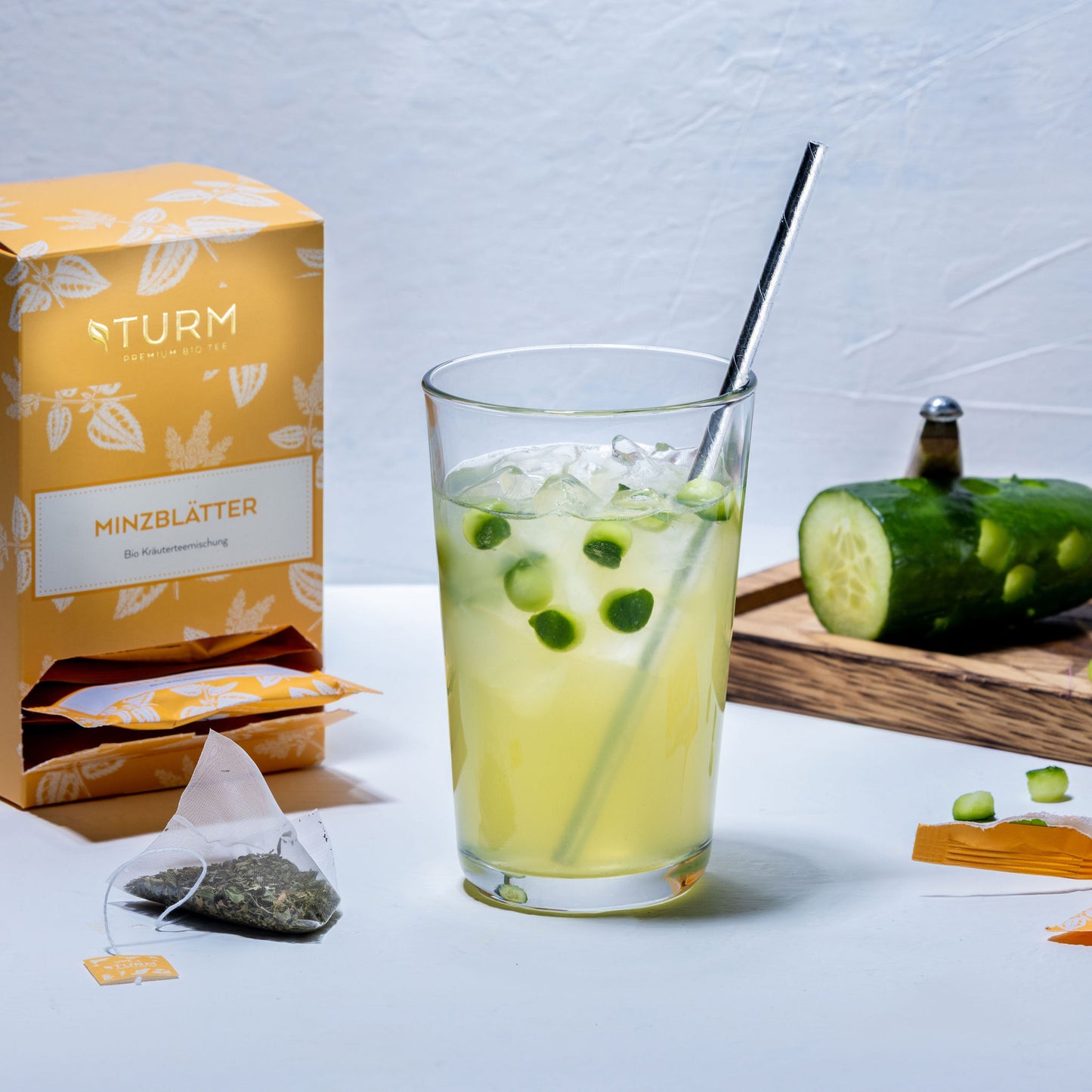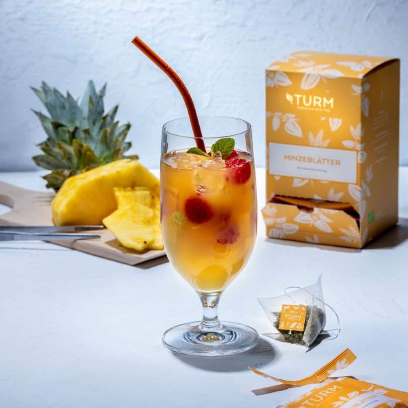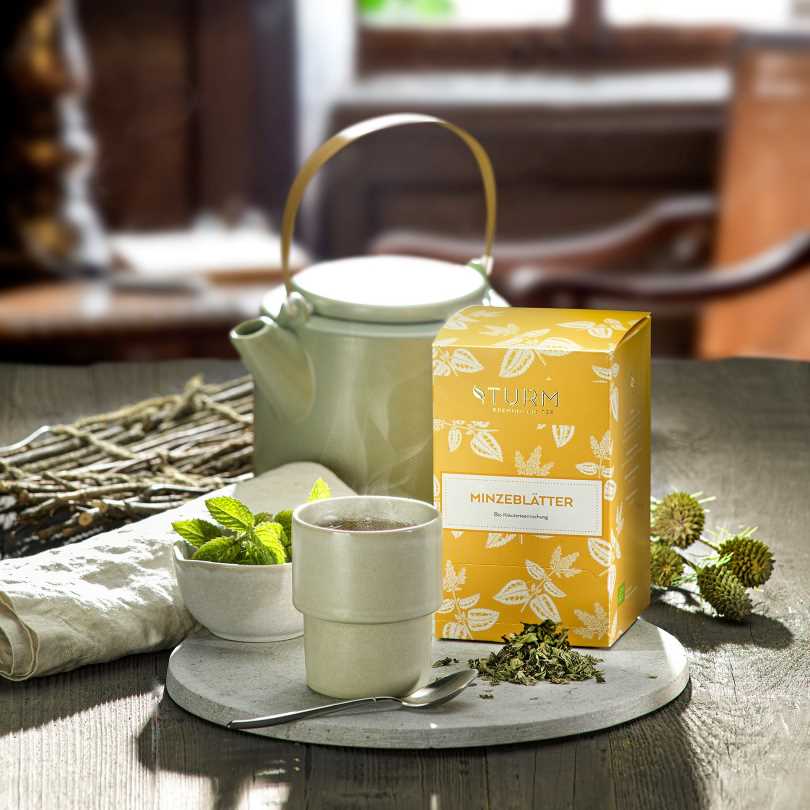 Die Turm Bio Minzeblätter-Teemischung setzt sich zusammen aus Krauseminze- und Pfefferminzeblättern aus kontrolliert biologischem Anbau. Frisch und natürlich minzig liefert Ihnen dieser Kräutertee einen belebenden Wellness-Kick.