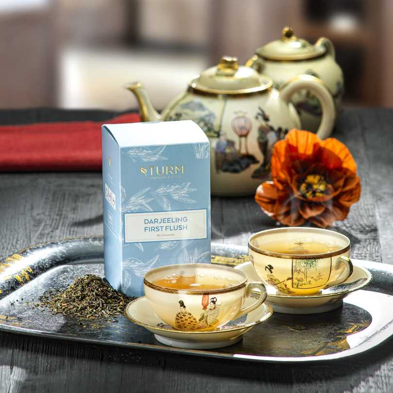 Aus der gerade einmal 181 Quadratkilometer grossen indischen Region Darjeeling stammt der berühmteste Tee der Welt: der Darjeeling. Kühle Temperaturen und grosse Höhe sorgen für hocharomatische Teeblätter. Unser Turm Bio Darjeeling Tee First Flush überzeugt durch arttypisches, zartes, frisches Aroma. Unser Tipp: Geniessen Sie ihn am besten pur ohne Milch und Zucker sowie Zitrone.